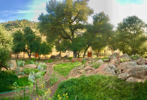 The retreat is located on 15 acres of ancient oaks and serene vegetation.